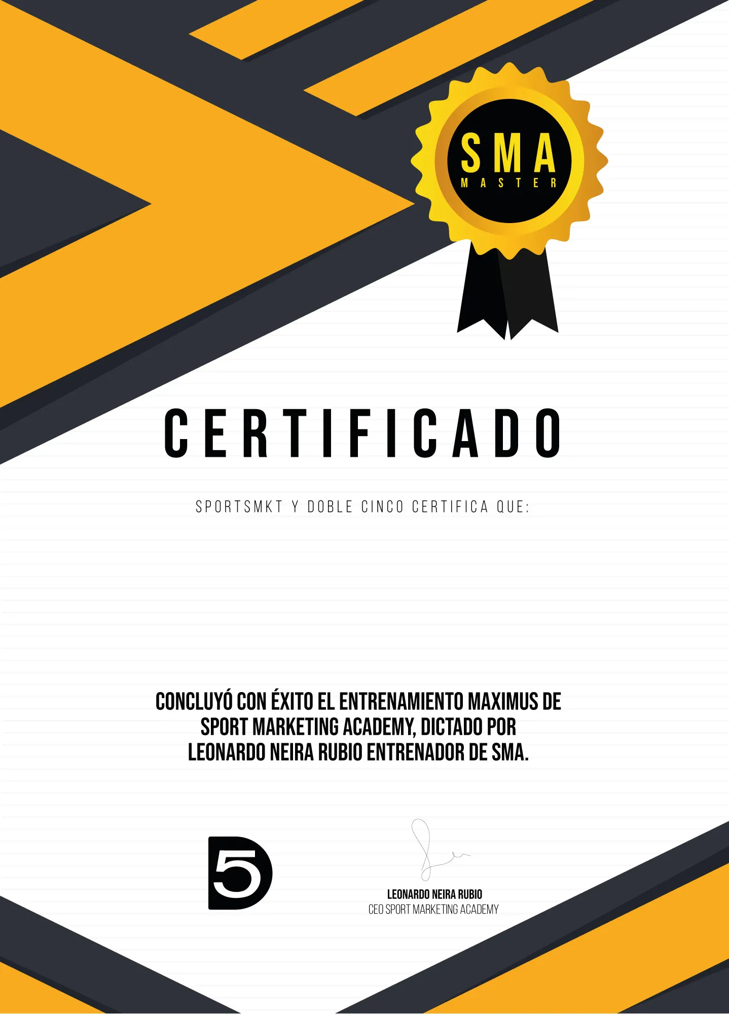 Realizando nuestros cursos tendrás la oportunidad de escalar tu carrera profesional sin duda alguna ! Recibirás um certificado de Sports Marketing Academy de Doble Cinco